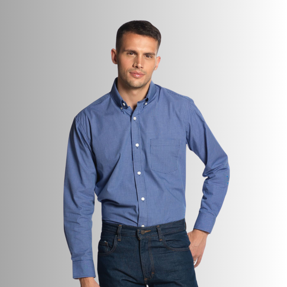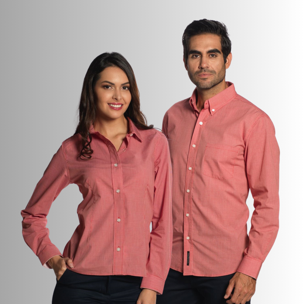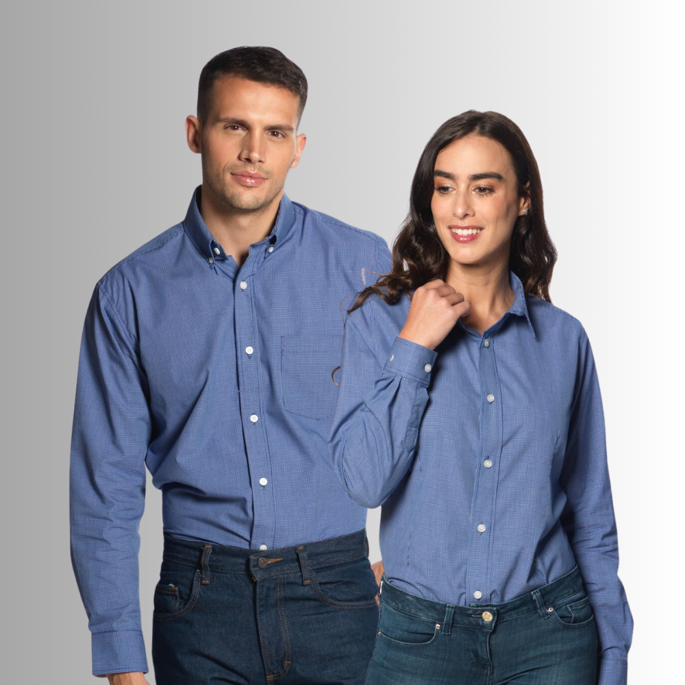 CAMISA 60% ALGODÓN, 40 poliéster FABRICADO EN: TELA SUAVE AL TACTO, CORTE: DAMA Y CABALLERO, CUELLO AJUSTABLE, CUELLO, PUÑO Y BOTONES REFORZADOS, BOTONES EN PUÑOS, TELA CON MICRO CUADROS, BOLSILLO EN CAMISA, MANGA LARGA