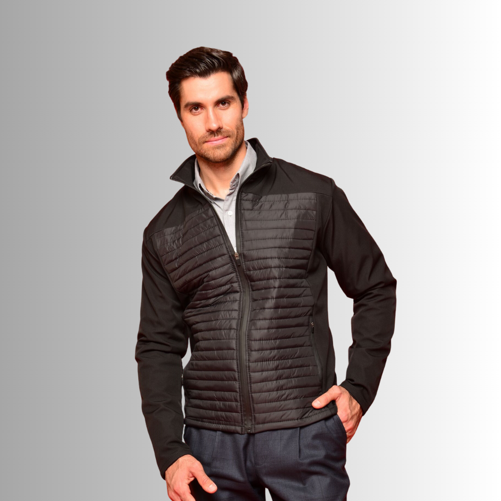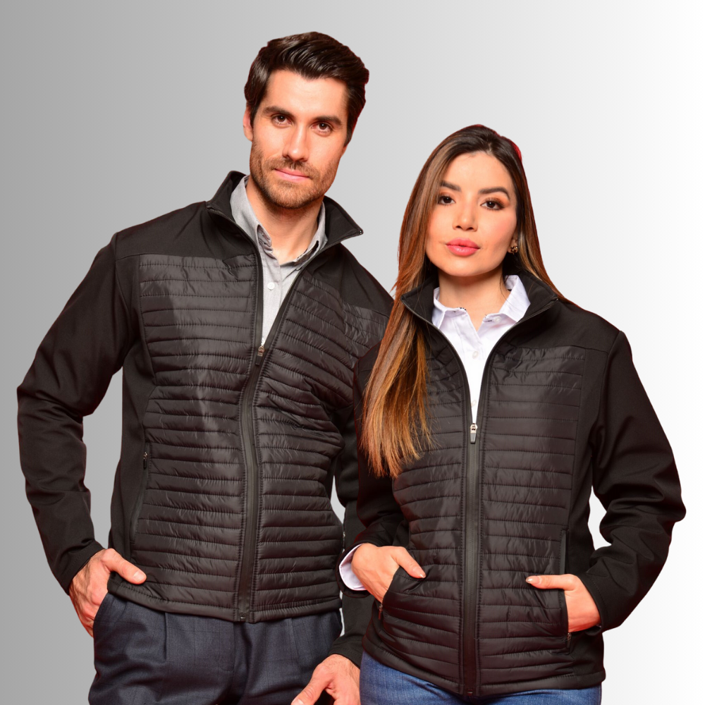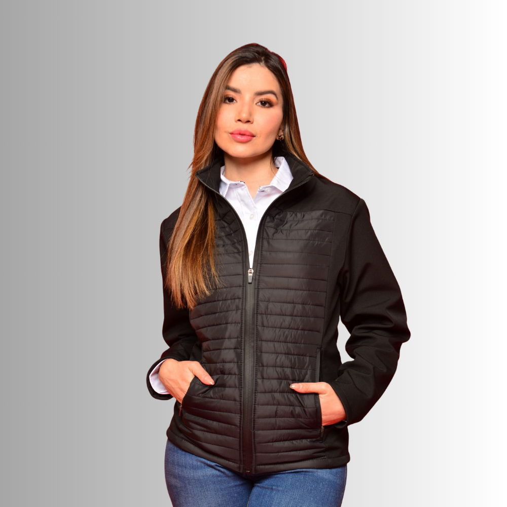 FABRICADO EN: TELA SUAVE AL TACTO, TELA CON NEOPRENO Y CAPITONADA, BOLSILLOS CON CIERRE, COMBINACION DE TELAS