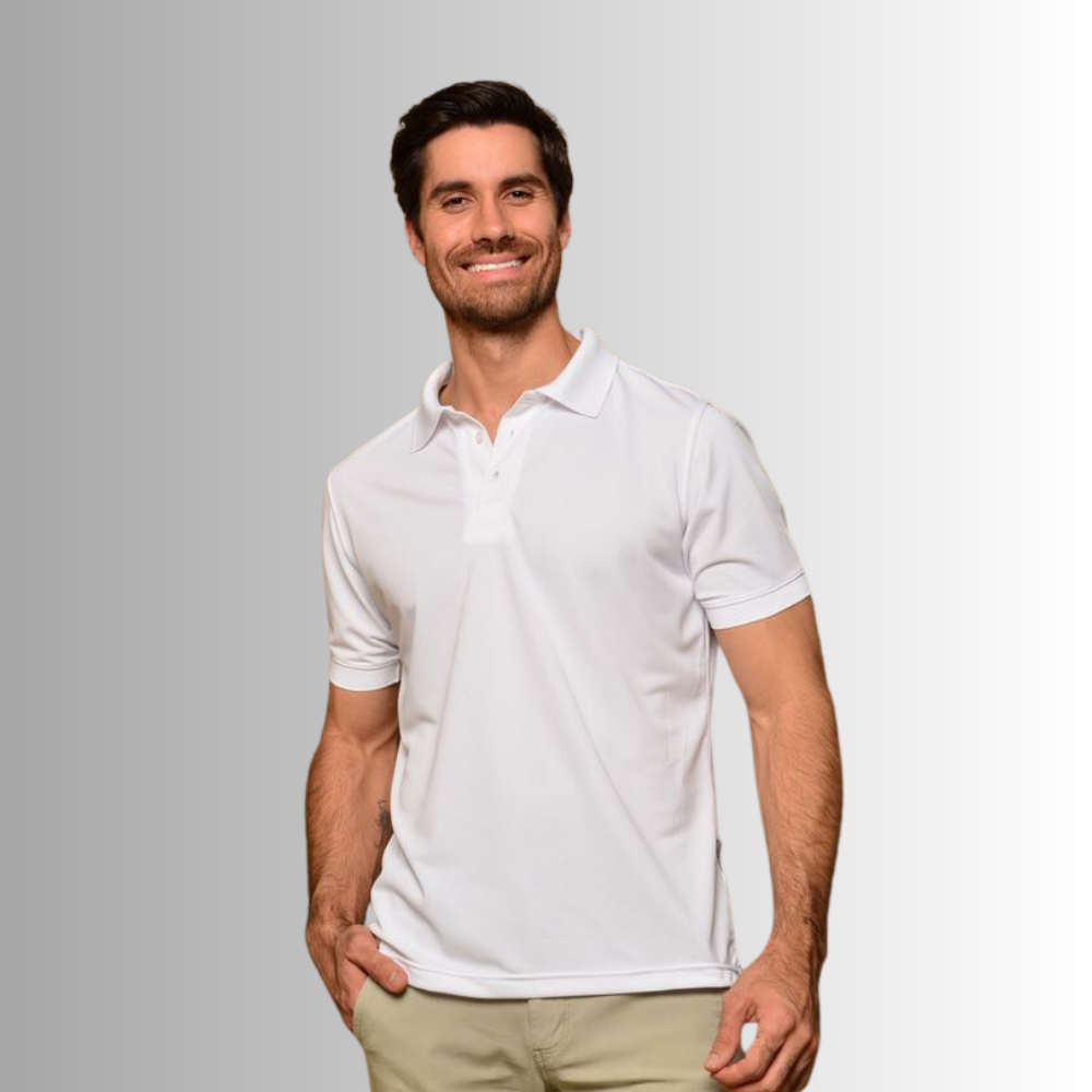 PLAYERA TIPO POLO MANGA CORTA 100% poliéster FABRICADO EN: TELA SUAVE AL TACTO, CORTE, DAMA Y CABALLERO, CUELLO Y MANGA CON CARDIGAN, BOTONES A TONO Y REFORZADOS, ABERTURA EN LOS COSTADOS , BIES DE COLOR
