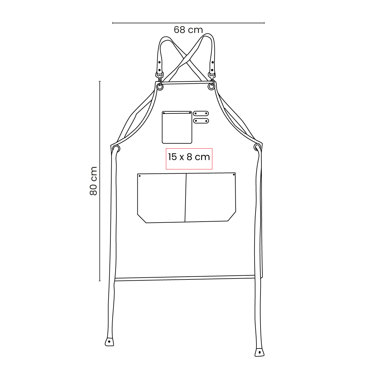 Incluye tres bolsillos frontales: uno en la parte superior, ideal para objetos pequeños, y dos en la parte inferior, perfectos para herramientas, utensilios o accesorios. Cuenta con tirantes ajustables con hebillas metalicas y remaches que aportan mayor resistencia y un toque de estilo. Su diseño cruzado en la espalda ofrece mayor comodidad. Elaborado para entornos de trabajo exigentes, desde cocinas industriales hasta talleres o espacios creativos.