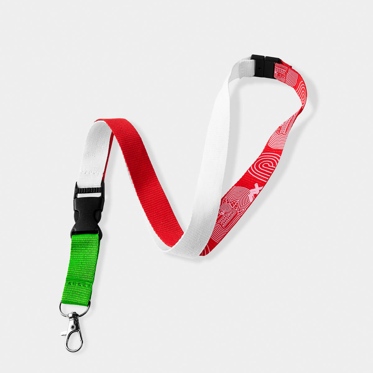PORTAGAFETE TRICOLOR CON DISEÑO INSPIRADO EN MÉXICO. INCLUYE BROCHE DE SEGURIDAD, CLIP DESMONTABLE Y GANCHO GIRATORIO. IDEAL PARA CREDENCIALES, LLAVES O TARJETAS. PERFECTO COMO SOUVENIR O PARA EVENTOS.