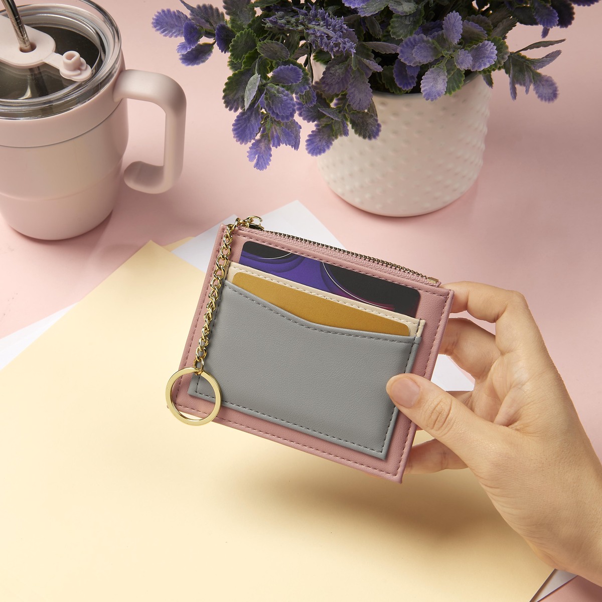 Practico monedero, cuenta con un compartimento para dinero en efectivo. Gracias a su cremallera mantendra tus monedas y billetes seguros. En el exterior, agrega multiples compartimentos para organizar tus tarjetas y credenciales. Su diseno se realza con una combinacion de tonos.